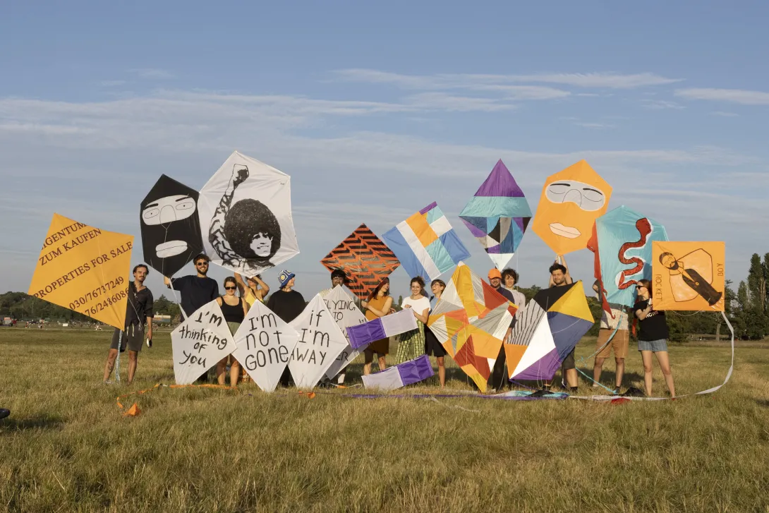 Azimut Tempelhof, Collective kite flying, Tempelhofer Feld, Berlin, 2023 © Rosa Merk